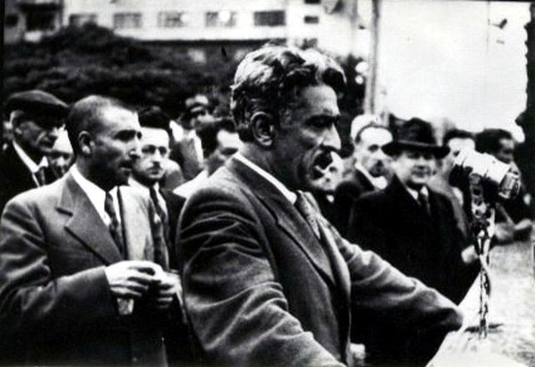 Самед Вургун выступает на похоронах Узеира Гаджибейли