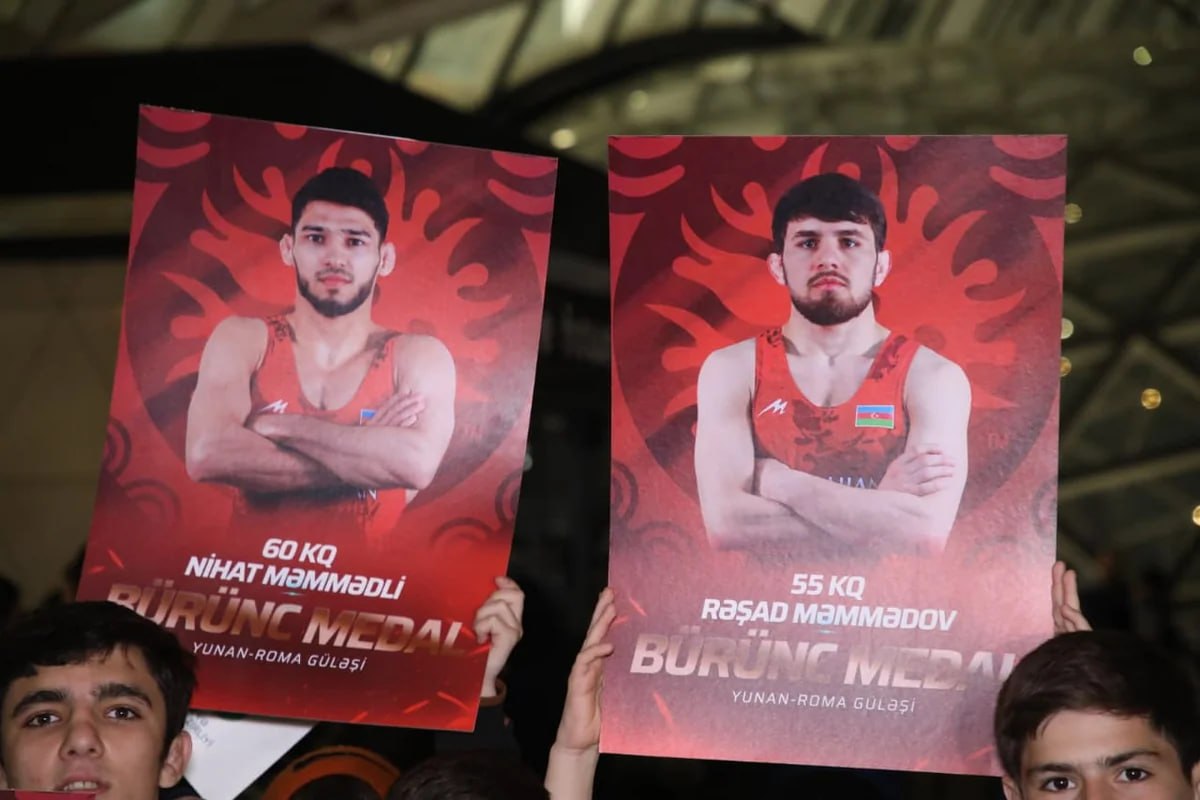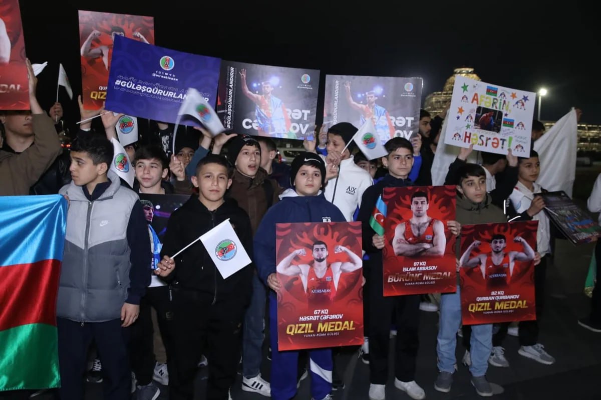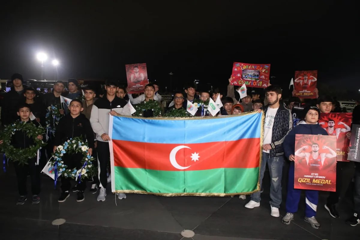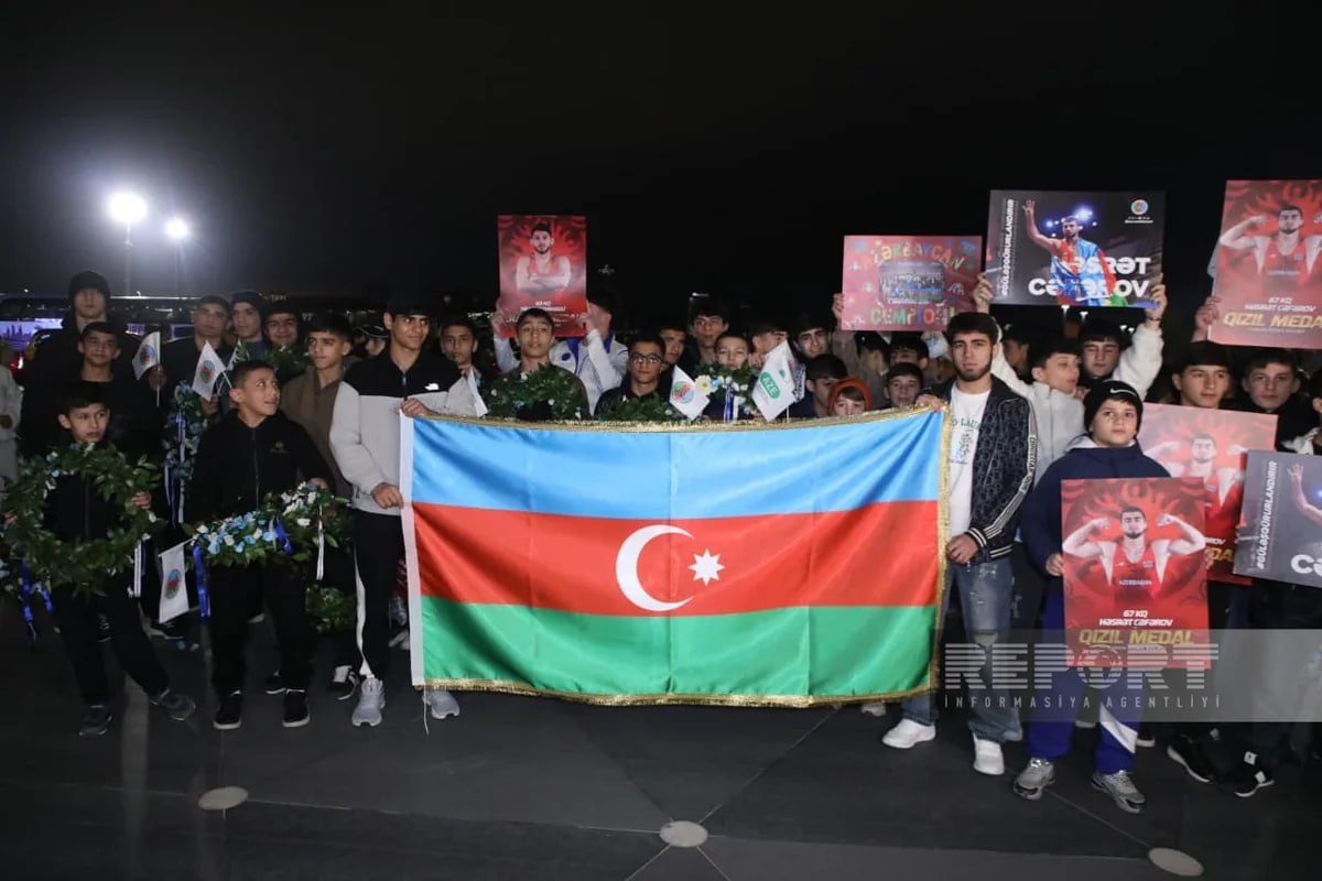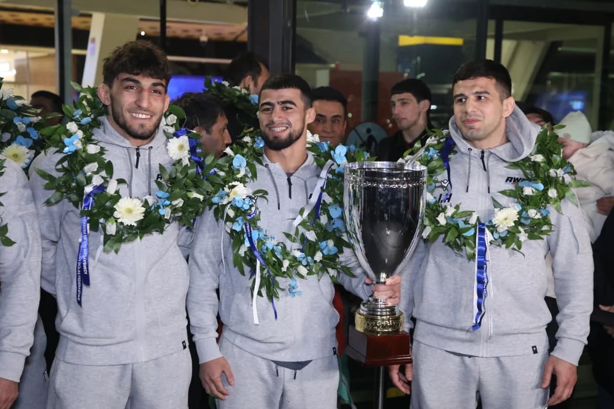 В Международном аэропорту Гейдар Алиев состоялась торжественная встреча сборной Азербайджана по греко-римской борьбе, которая, завоевав на чемпионате Европы в Албании две золотые и три бронзовые медали, заняла первое место в командном зачете и стала чемпионом Европы.