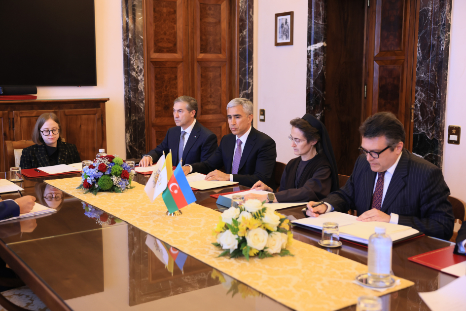 Как сообщает АЗЕРТАДЖ, на встрече, состоявшейся в Ватикане, документ подписали помощник Президента Азербайджанской Республики, исполнительный директор Фонда Гейдара Алиева Анар Алакбаров и президент губернаторства города-государства Ватикан монахиня Раффаэлла Петрини.
